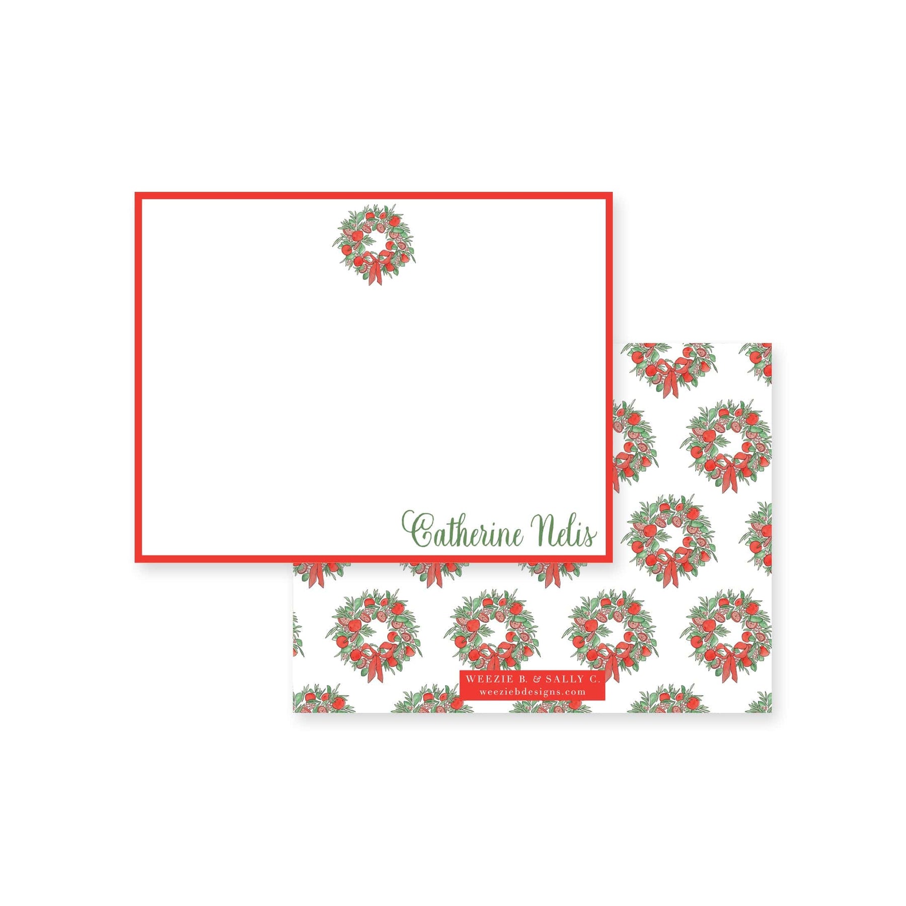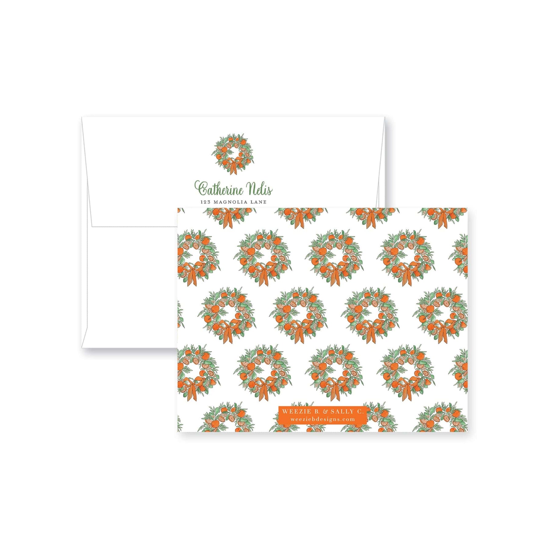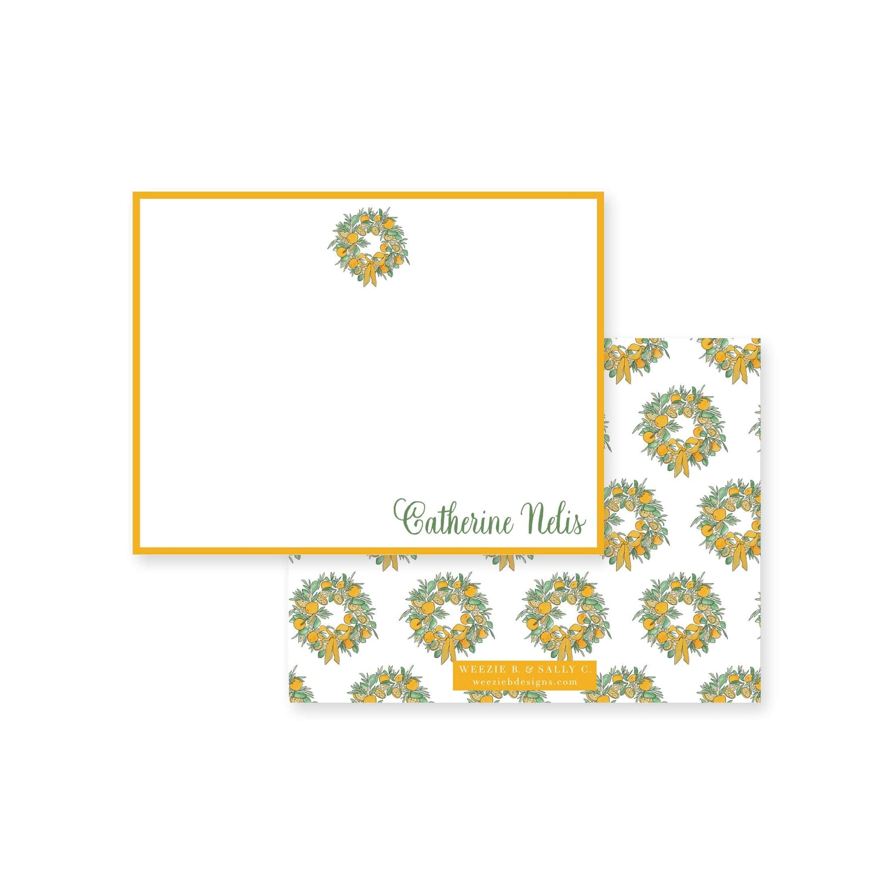 Citrus Wreath With Ribbon Flat Note Card features our beautiful watercolor citrus wreath in three colors! Choose from lemons, oranges, or pomegranates! They are the perfect gift or treat.