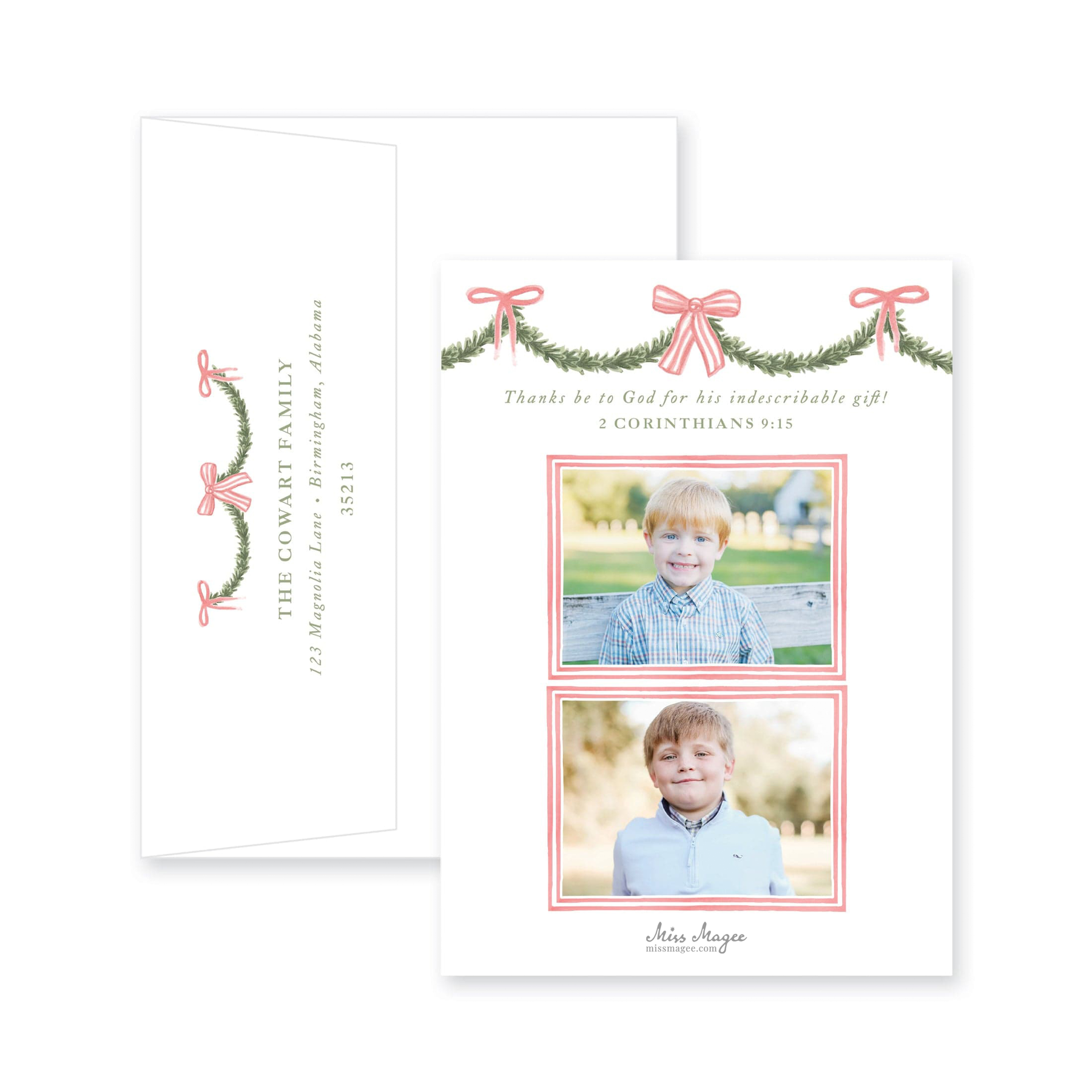 Holiday Garland and Bows Vertical Christmas Card