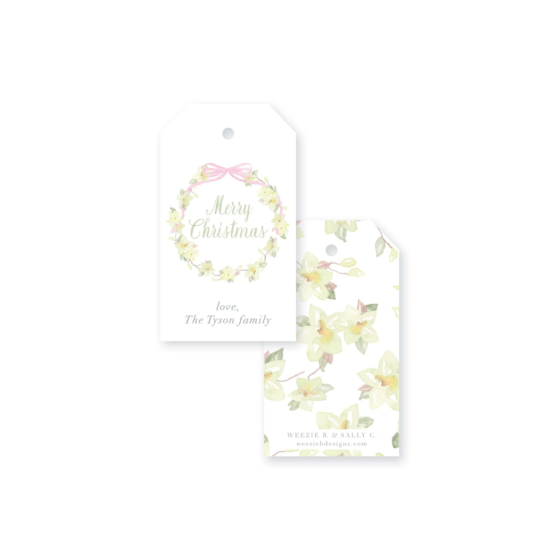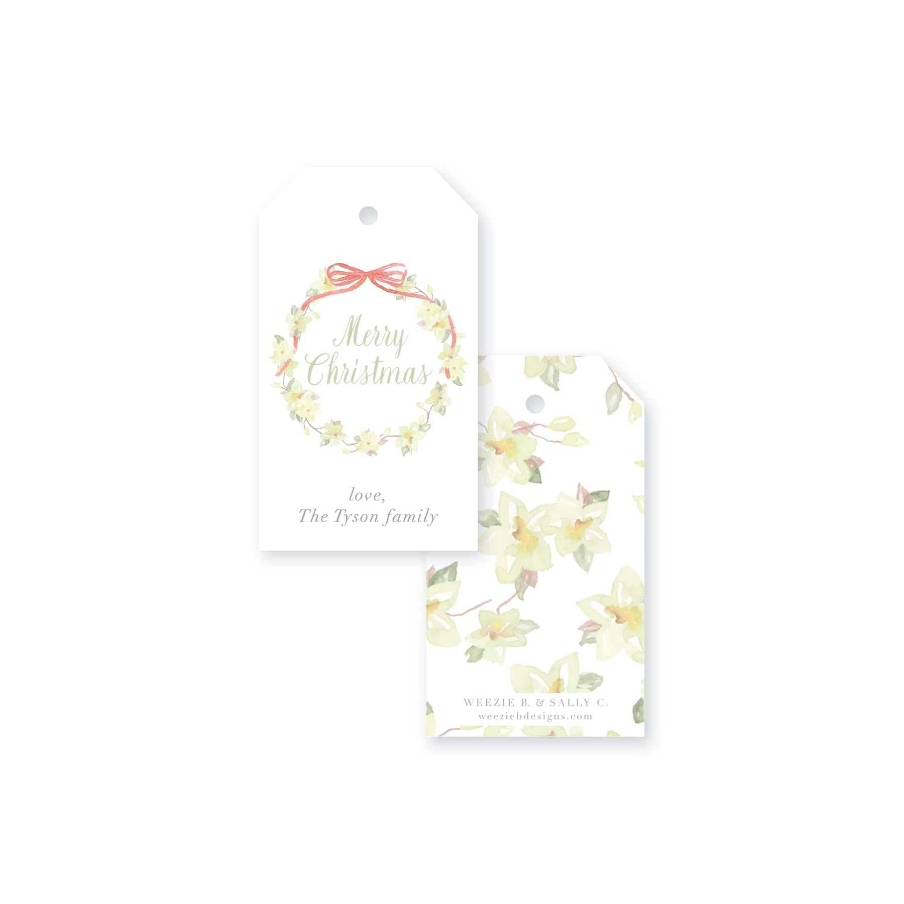 Magnolia Wreath and Ribbon Christmas Gift Tag