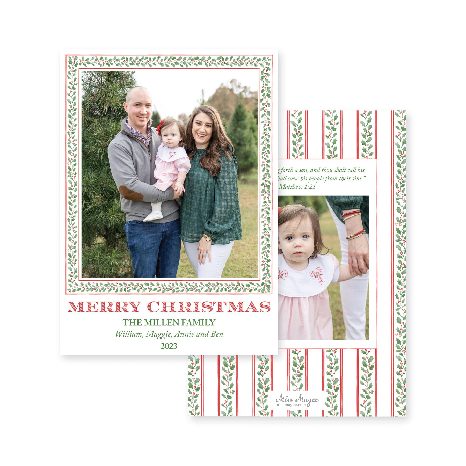 Holly Vine Wreath Christmas Card features our custom created holly vine framing your gorgeous photo on the front!