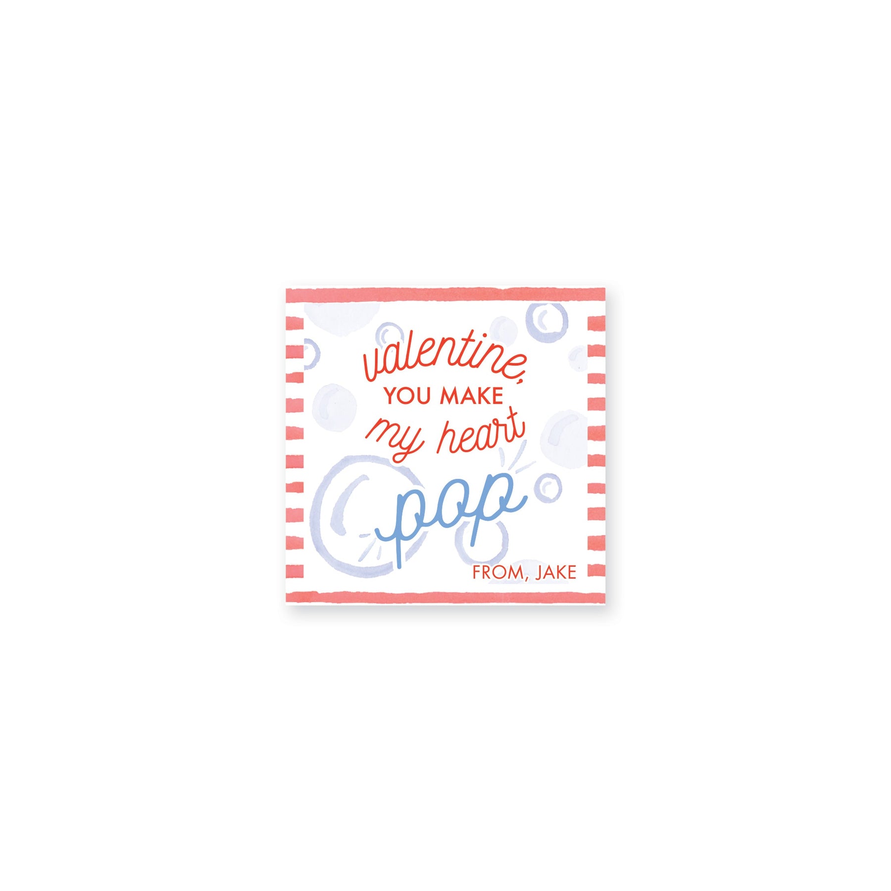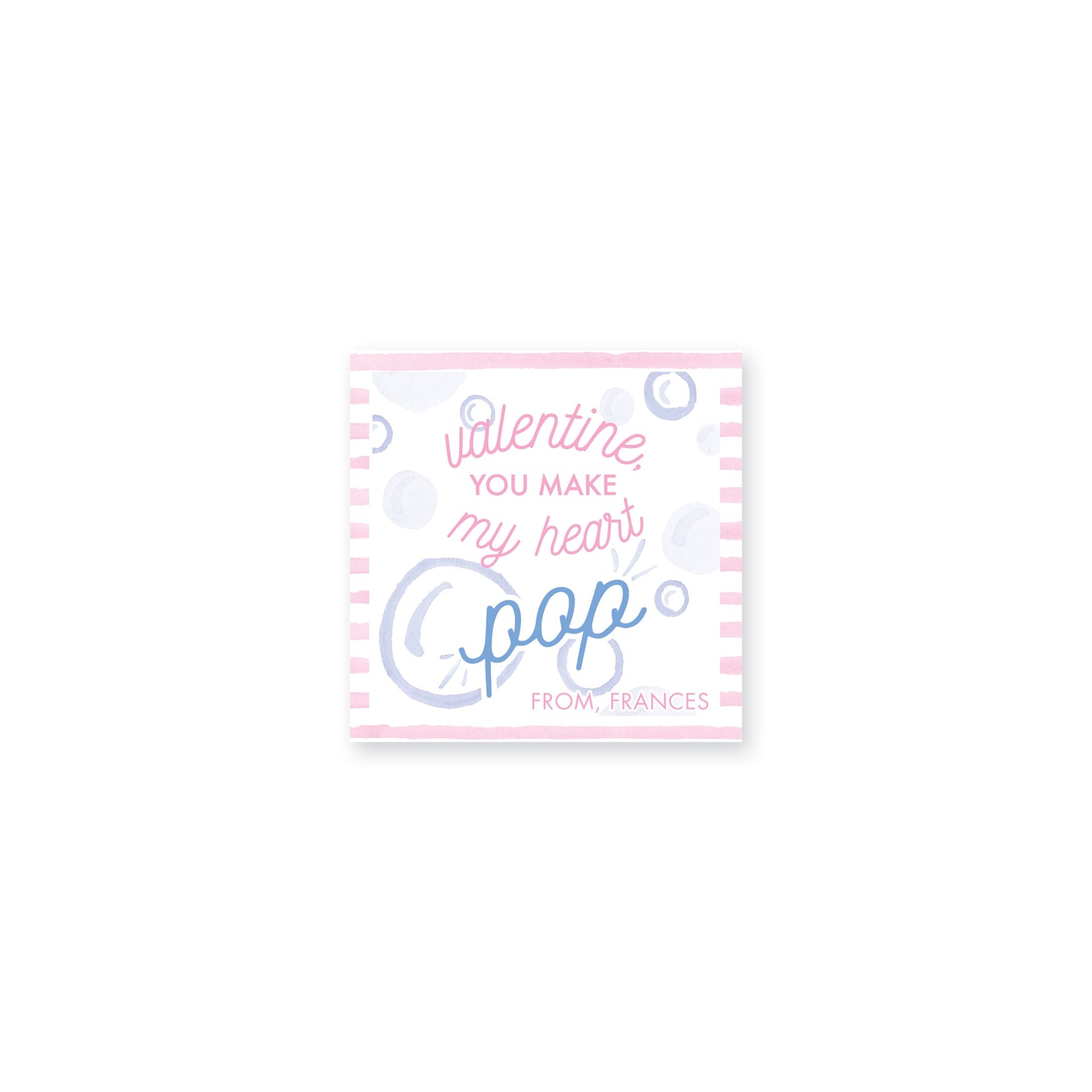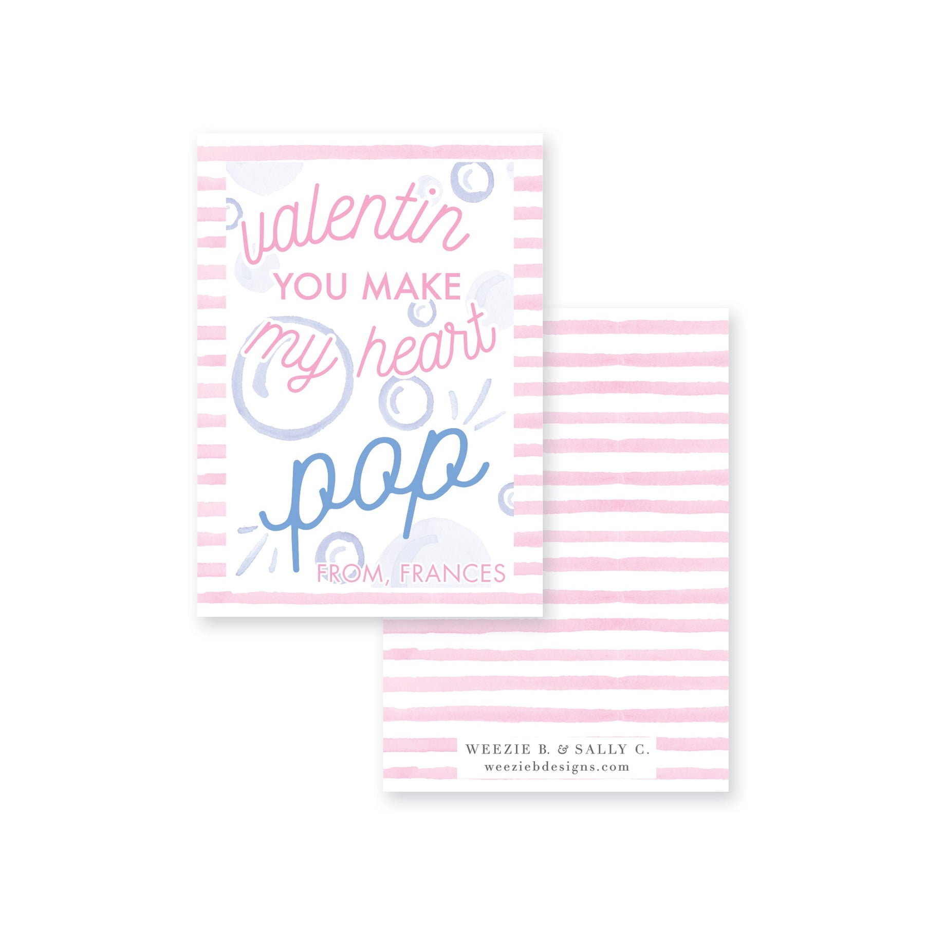 Make My Heart Pop Valentine's Day cards are sure to be an eye catcher with your little one! Our watercolor design is perfect to be paired with any treat but especially a some bubbles!