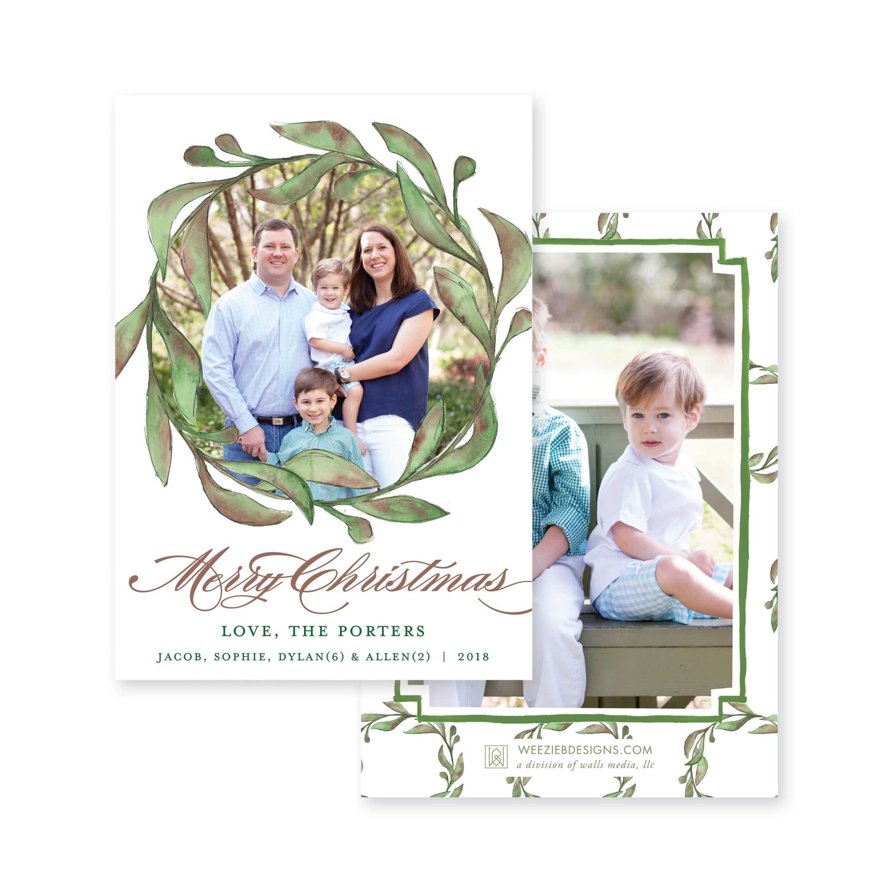 Mistletoe Wreath Christmas Card features your photo on the front encircled by a custom mistletoe watercolor wreath!