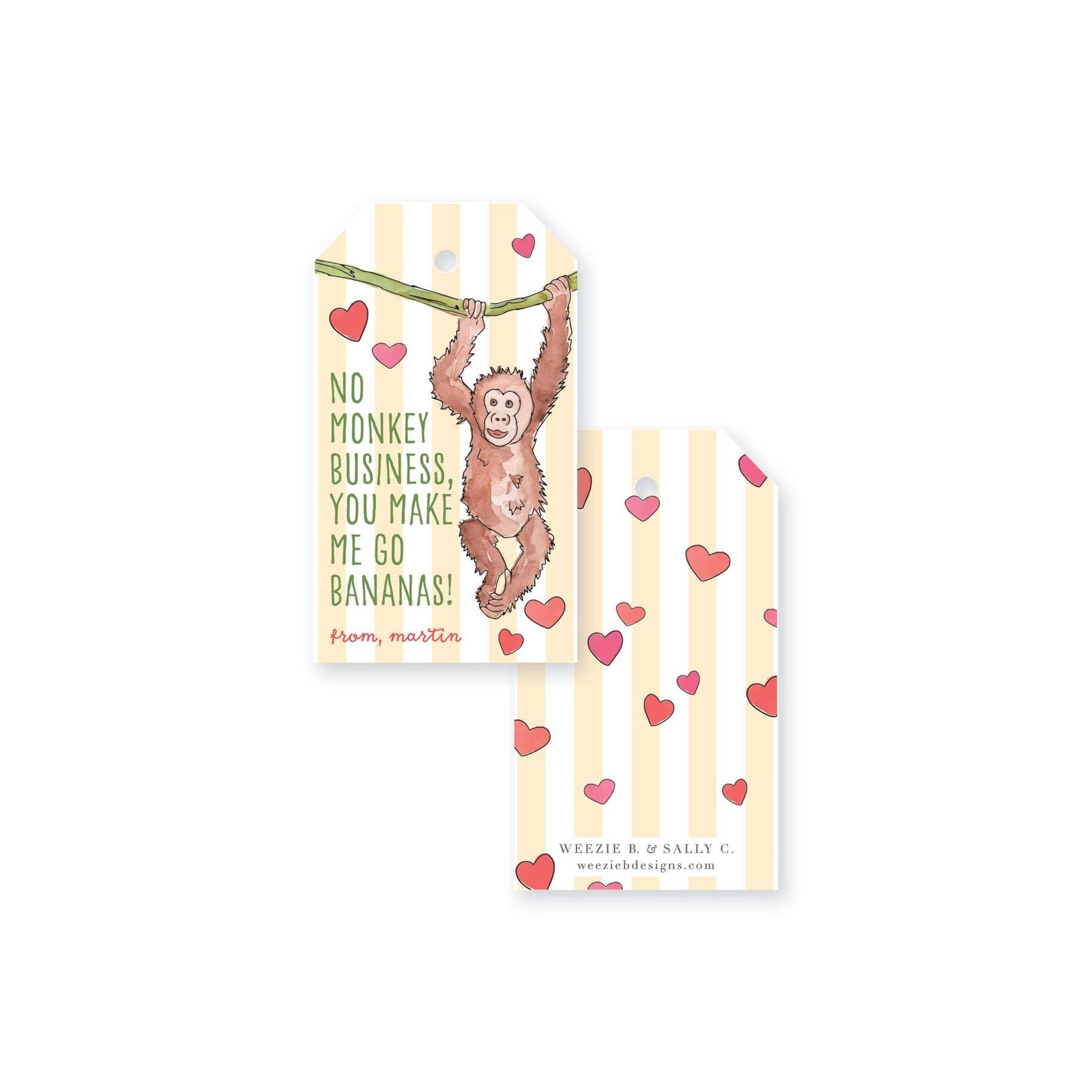 Monkey Valentine's Day cards are so much fun! This design is so fun attached to a monkey toy, banana or any fun treat! Other greeting ideas include "I love hanging with you" and "I'm not monkeying around, you're super cool!"