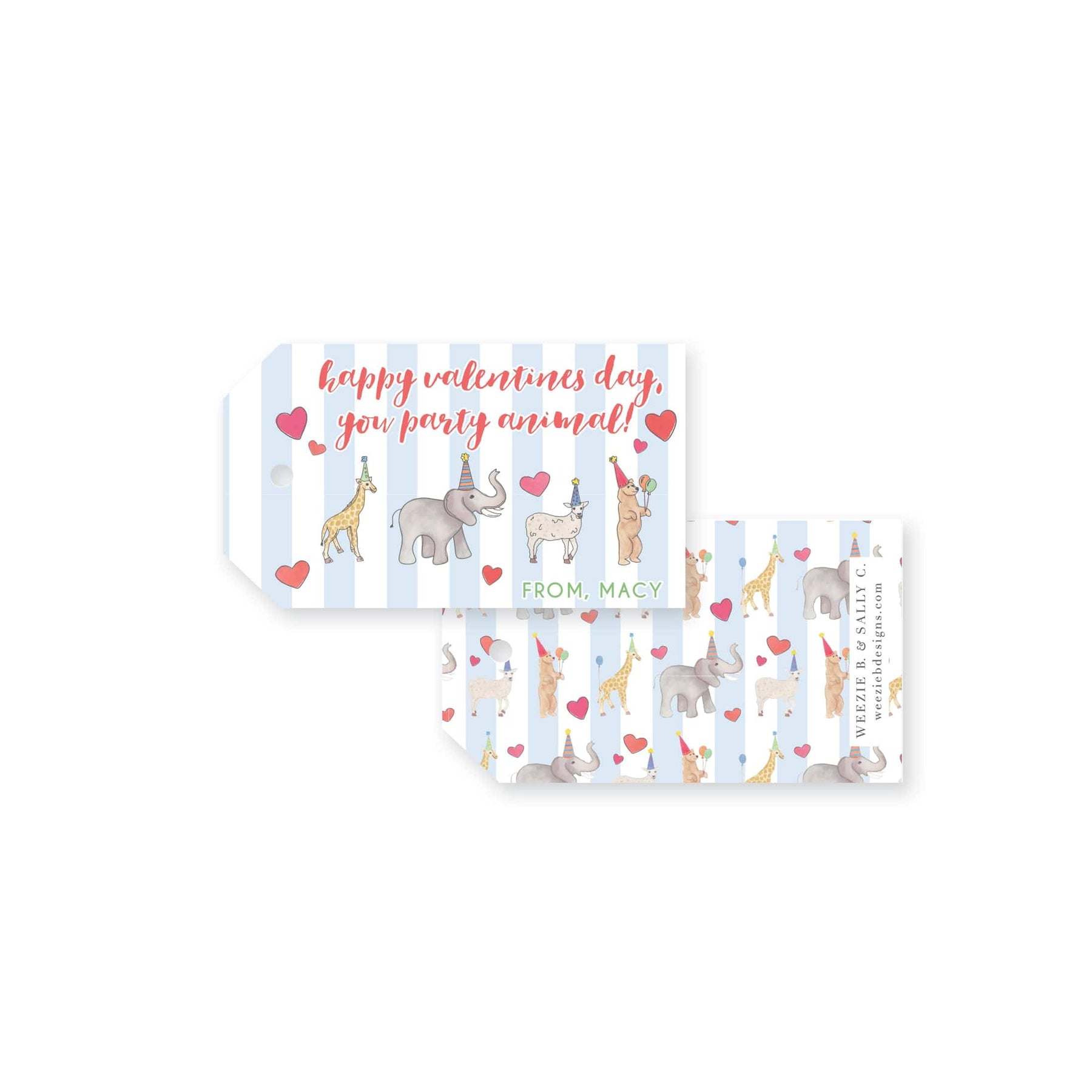Party Animal Valentine's Day cards are roaring fun! This design is so fun attached to any animal toy like a figurine or bath toy or party horns!