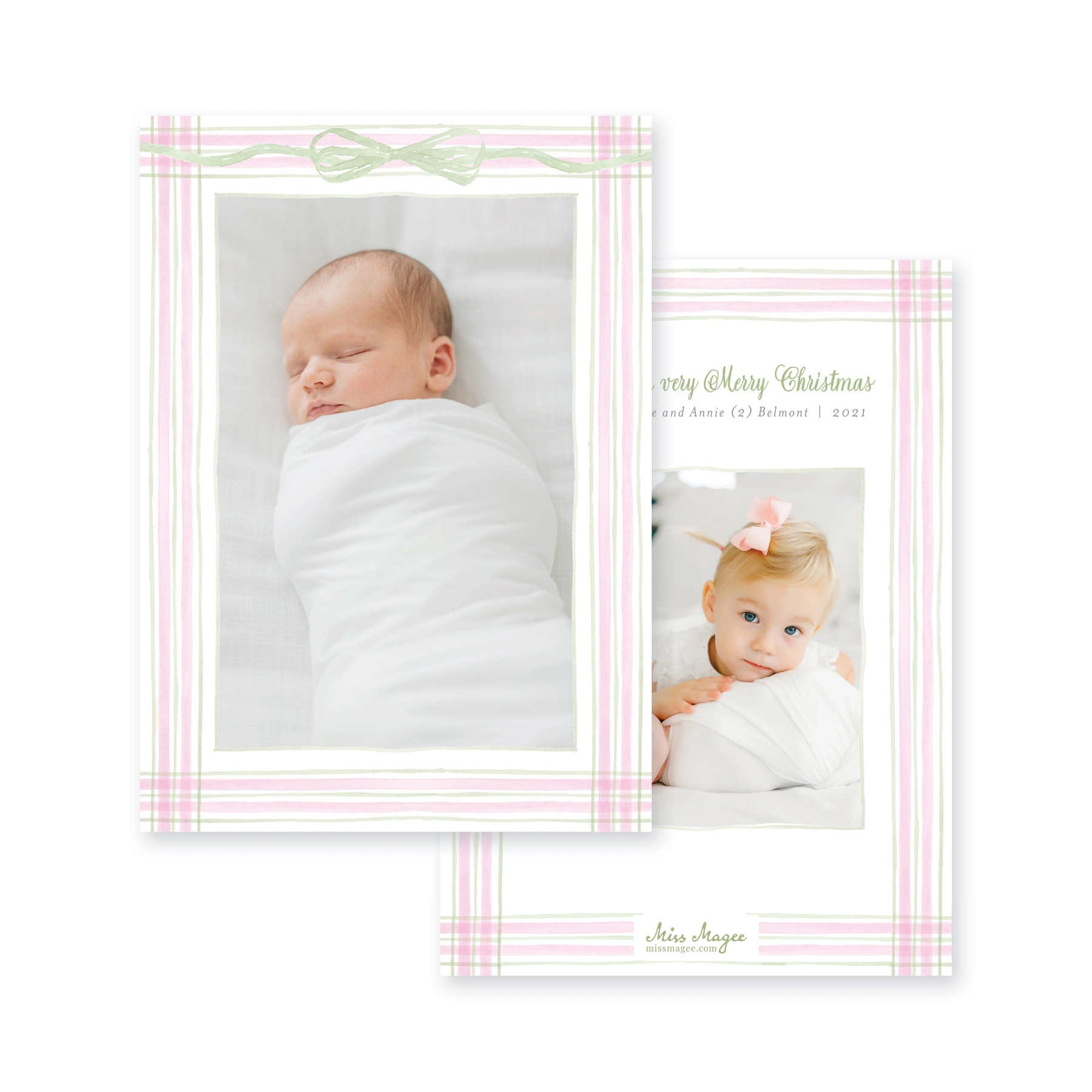 Watercolor Plaid Frame Announcement Christmas Card is the perfect birth announcement to send to your friends and family during the Christmas season.