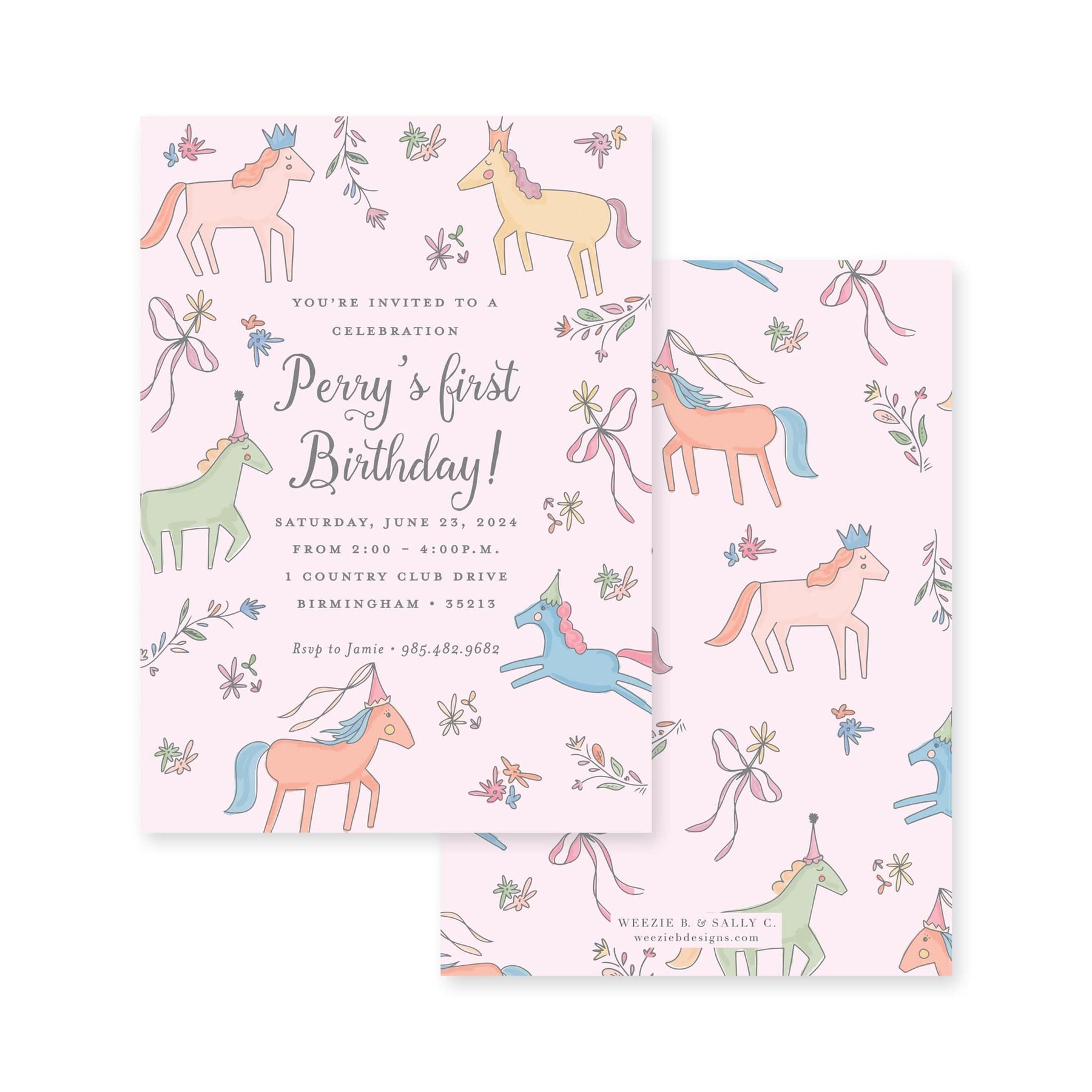 Magical Pony invitation is perfect for your little princess! Be sure to keep the magic flying with some matching party goods.