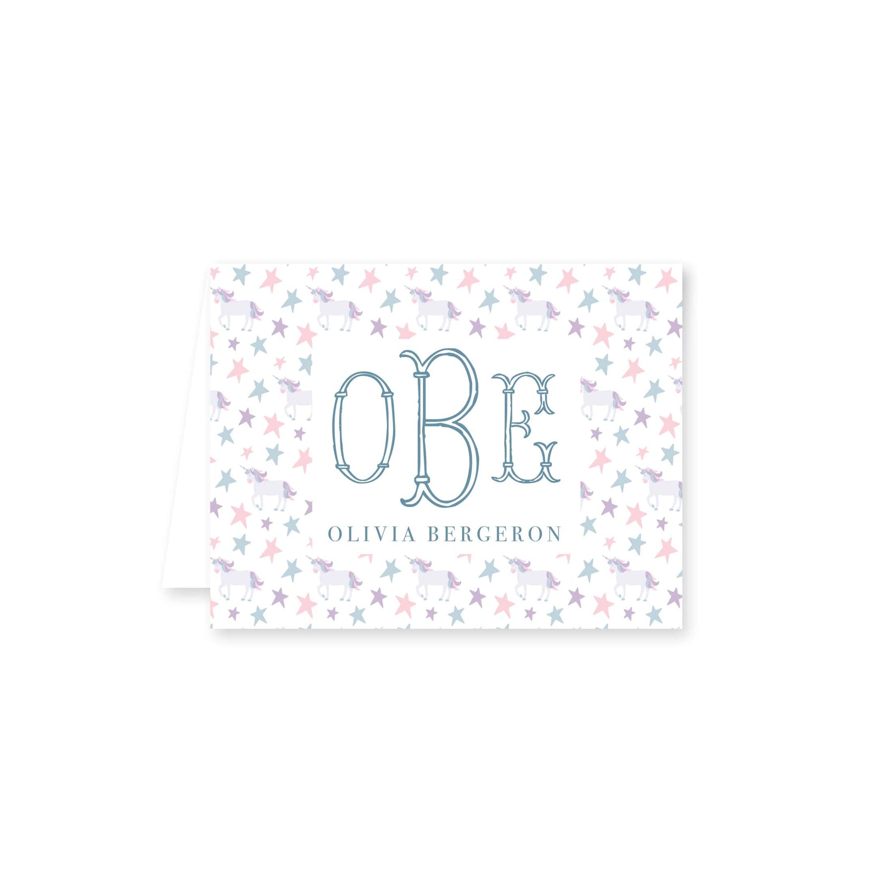 Light Unicorn Stars Personalized Folded Note Cards feature an adorable unicorn pattern and is personalized with your name and monogram! You can use these for thank you notes or just a card for any type of note!