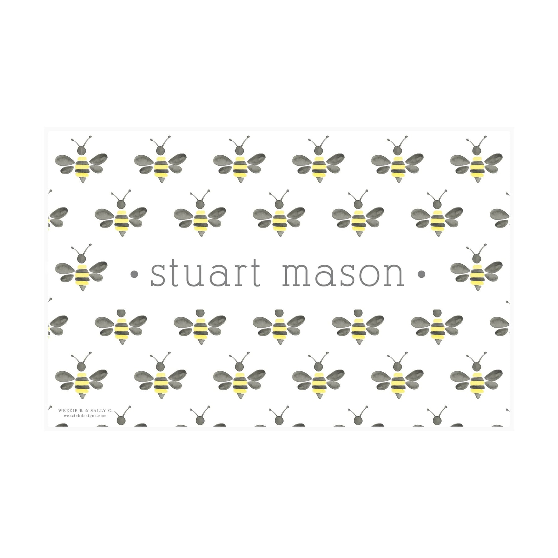 Watercolor Bumble Bee Laminated Place Mat makes a sweet addition to your table. Your little busy bee will love stripes and bumble bee pattern- and you'll be happy to keep your table a little less messy. Both sides are personalized with your little ones name. These Place Mats are laminated so you can wipe and reuse. These personalized place mats make a great and usable gift for any occasion!
