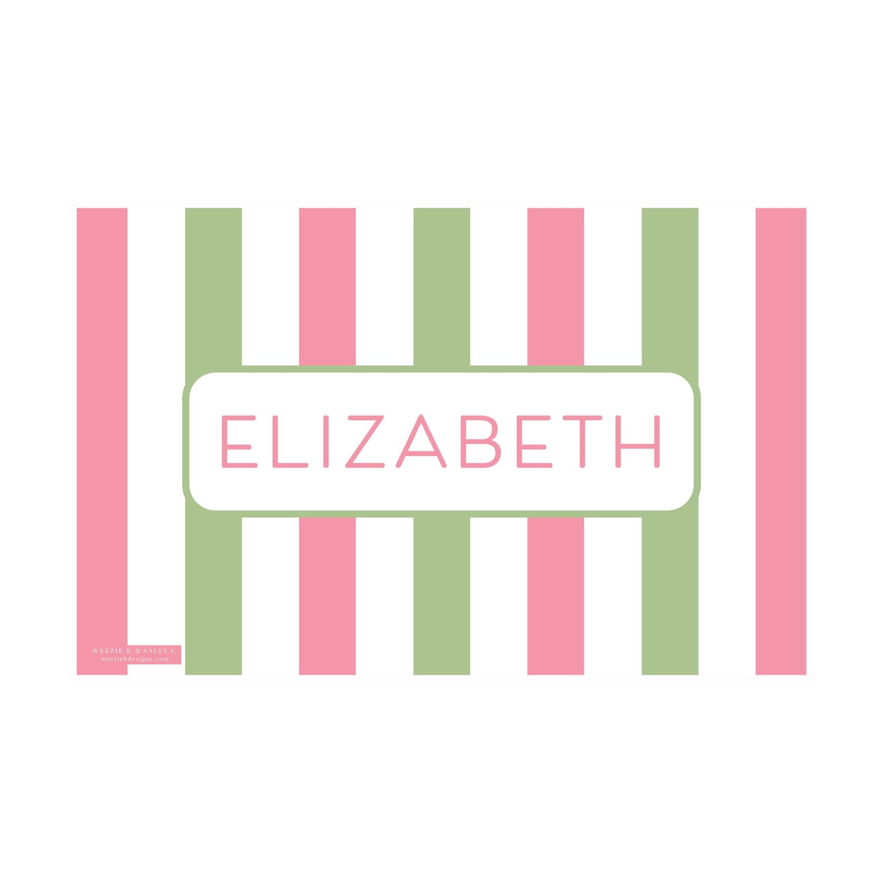 Florella Laminated Place Mat makes a sweet addition to your table. Your little one will love the festive and chic watercolor pattern- and you'll be happy to keep your table a little less messy. The other side features simple stripes with your little ones name in a box in the middle. These Place Mats are laminated so you can wipe and reuse. These personalized place mats make a great and usable gift for any occasion!
