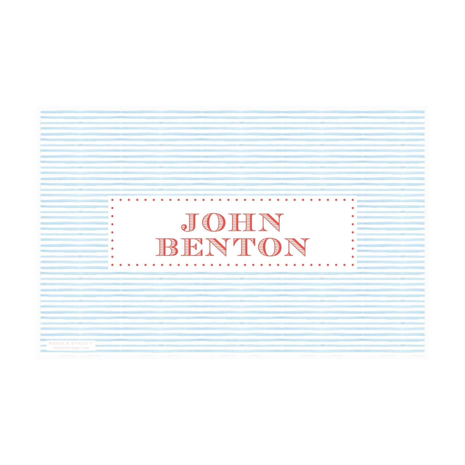 Watercolor Dumptruck - Stripes Laminated Place Mat makes a sweet addition to your table. Your little one will be happy to have this fun and festive placemat to view- and you'll be happy to keep your table a little less messy. The other side features simple stripes with your little ones name in a box in the middle. These Place Mats are laminated so you can wipe and reuse. These personalized place mats make a great and usable gift for any occasion!