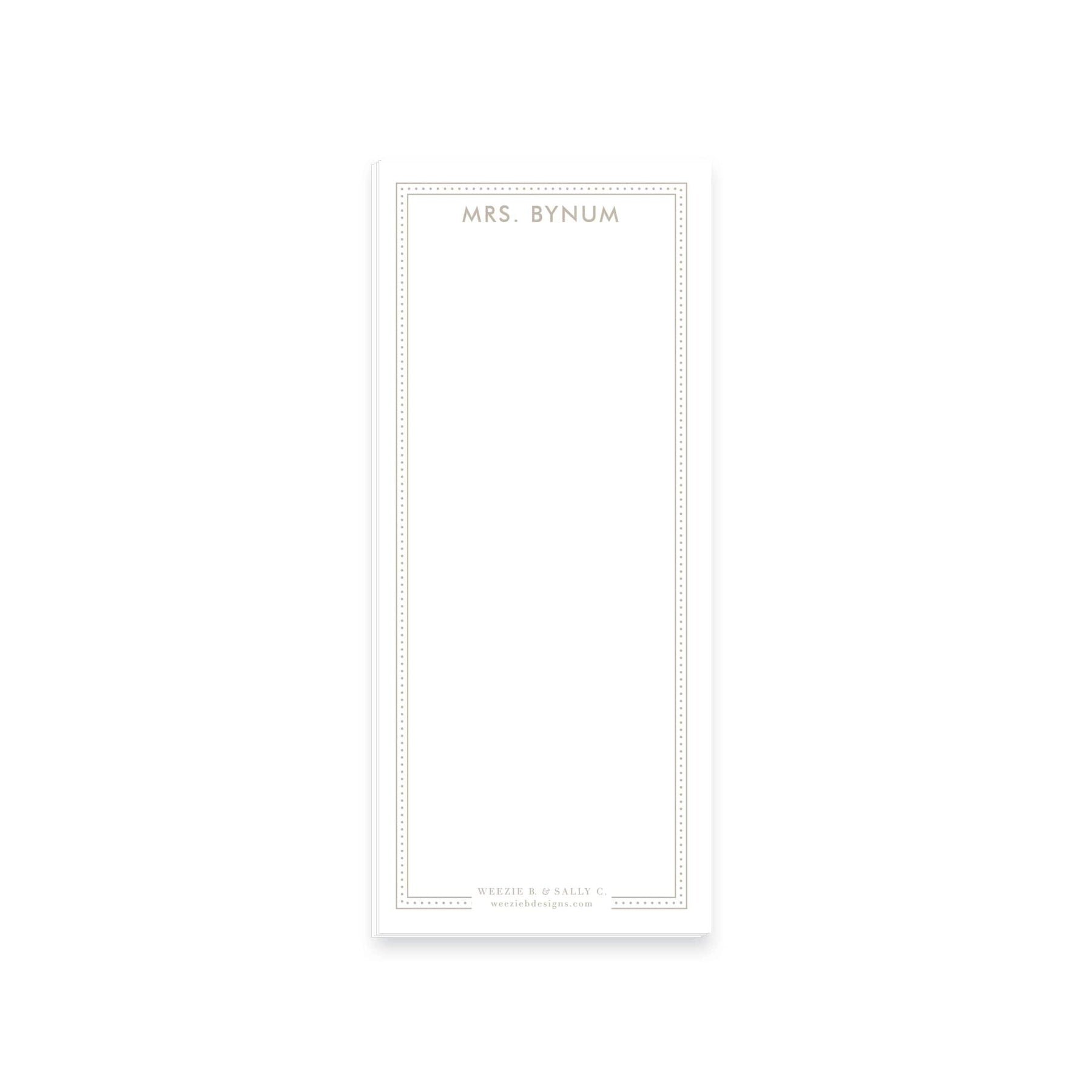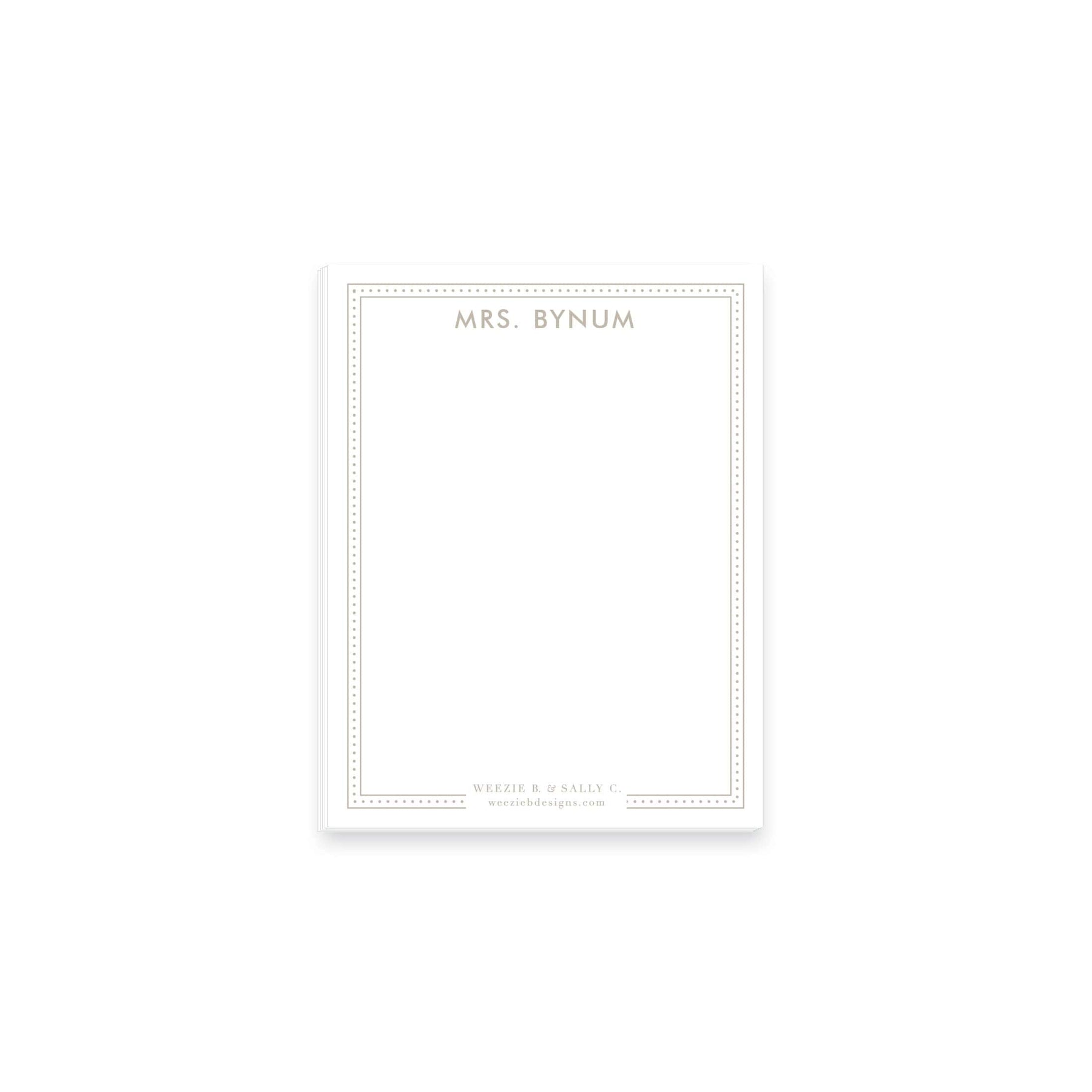 Dot Line Notepad.  This personalized notepad will bring a little spring to your desk or counter! It matches our Dot Line Stationery. We can custom monogram like example for all your gift giving needs!