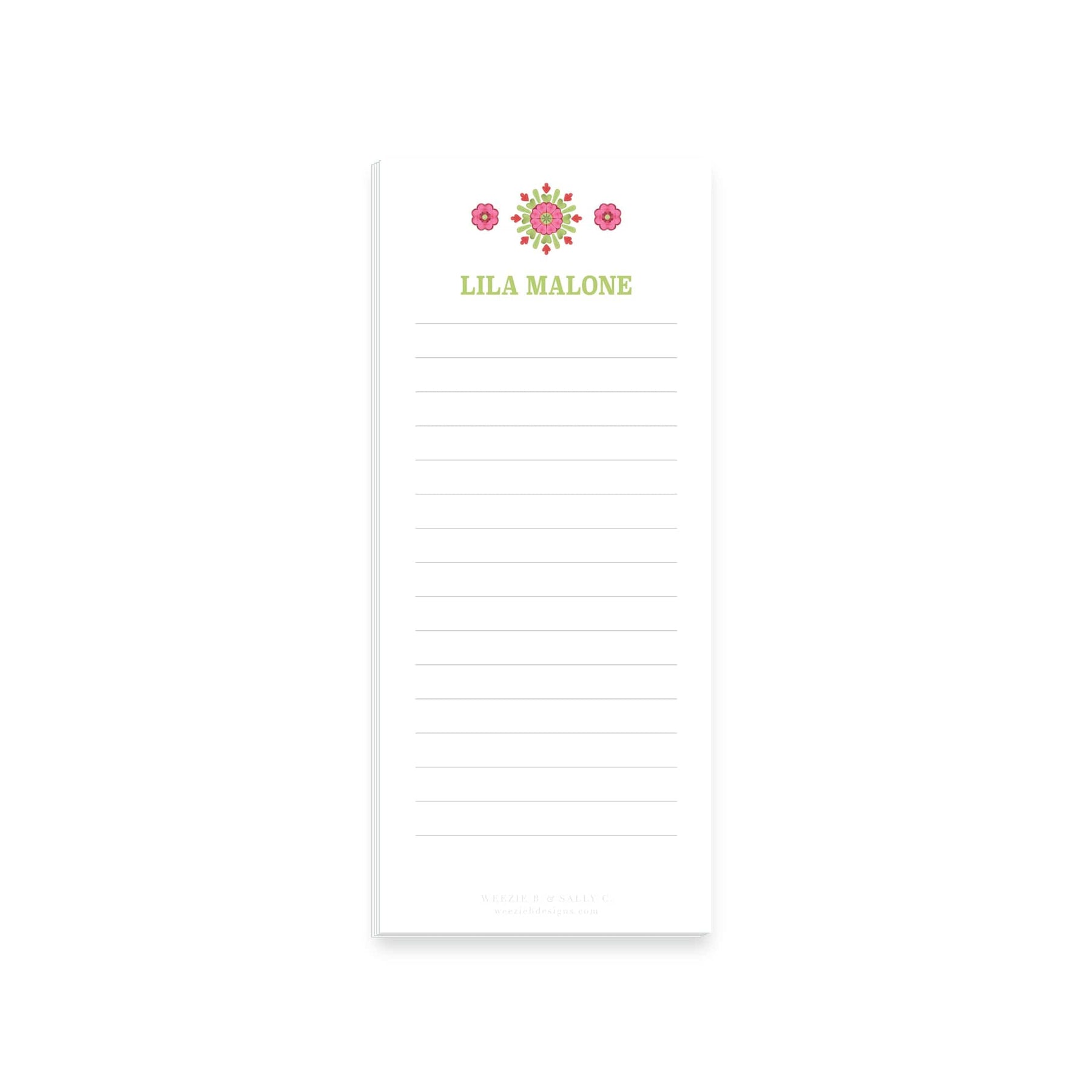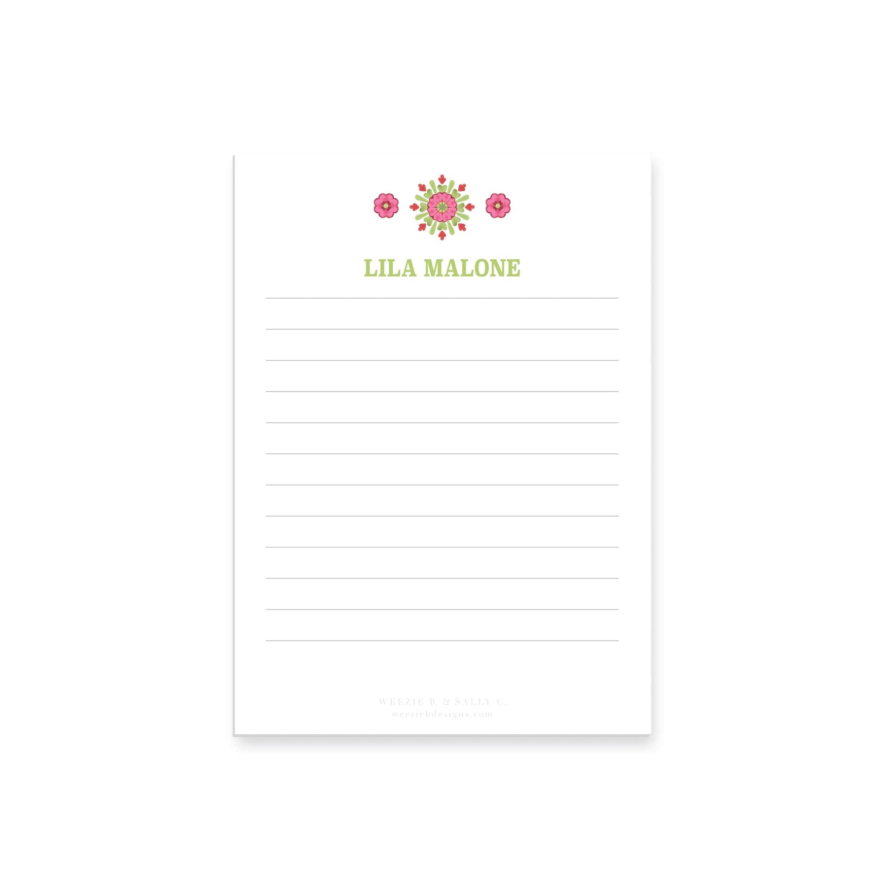 Florella Notepad is fun and funky. This personalized notepad will bring a little spring to your desk or counter!
