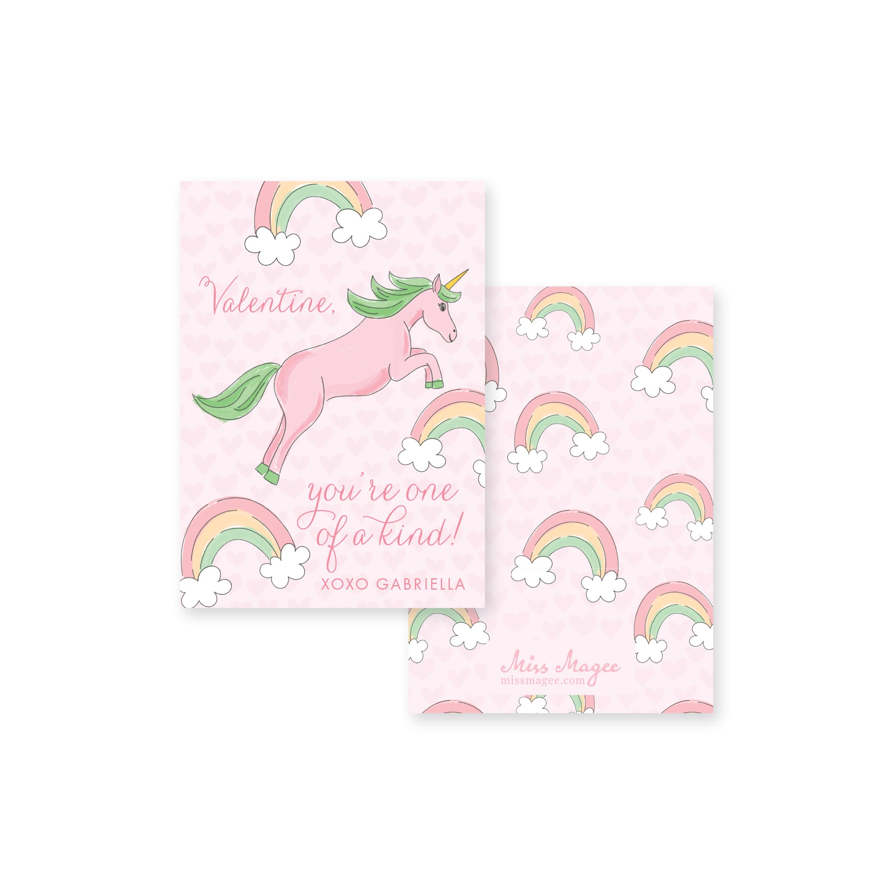 This Unicorn Valentine's Day cards are a favorite with all children and is sure to stand out from the crowd! Personalize with a name and fill in with classmates names on the back!