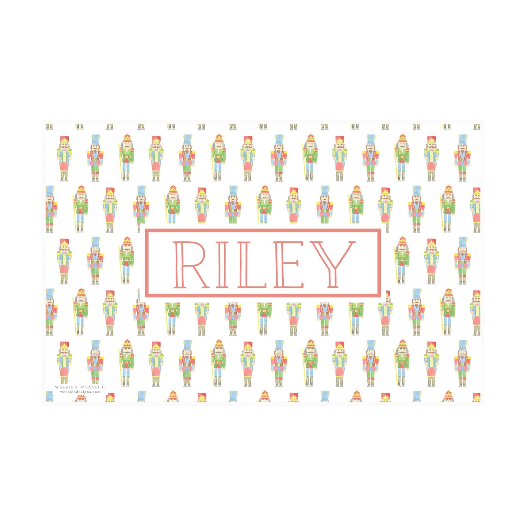 Nutcracker Watercolor Laminated Placemat makes a sweet addition to your table. Your little one will be happy to have this fun and festive placemat to view- and you'll be happy to keep your table a little less messy. The other side features watercolor plaid with your little ones name in a box in the middle. These Place Mats are laminated so you can wipe and reuse. These personalized place mats make a great and usable gift for any occasion!
