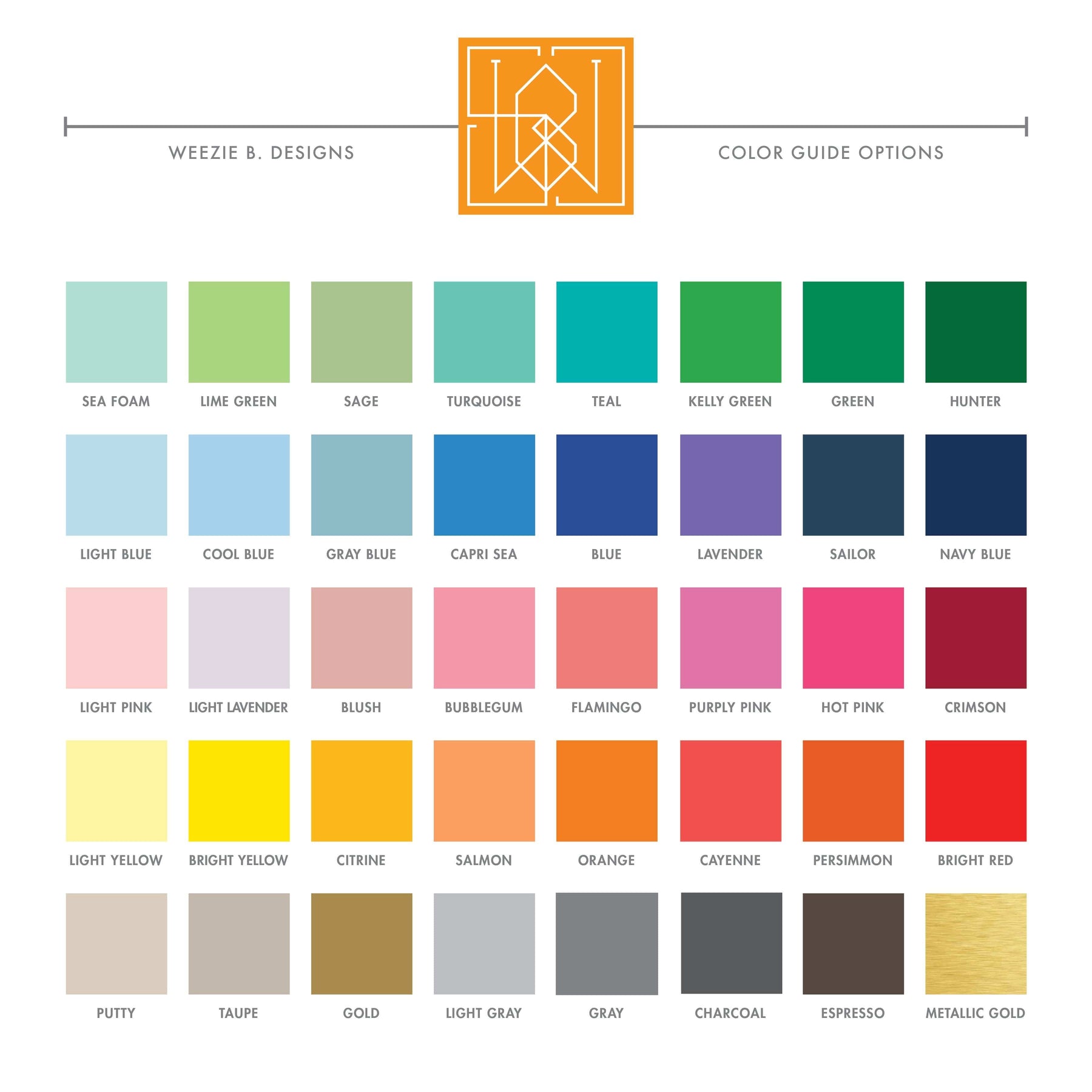 If you are interested in changing a color or monogram style, please visit the Design Guides and let me know in Additional Notes.